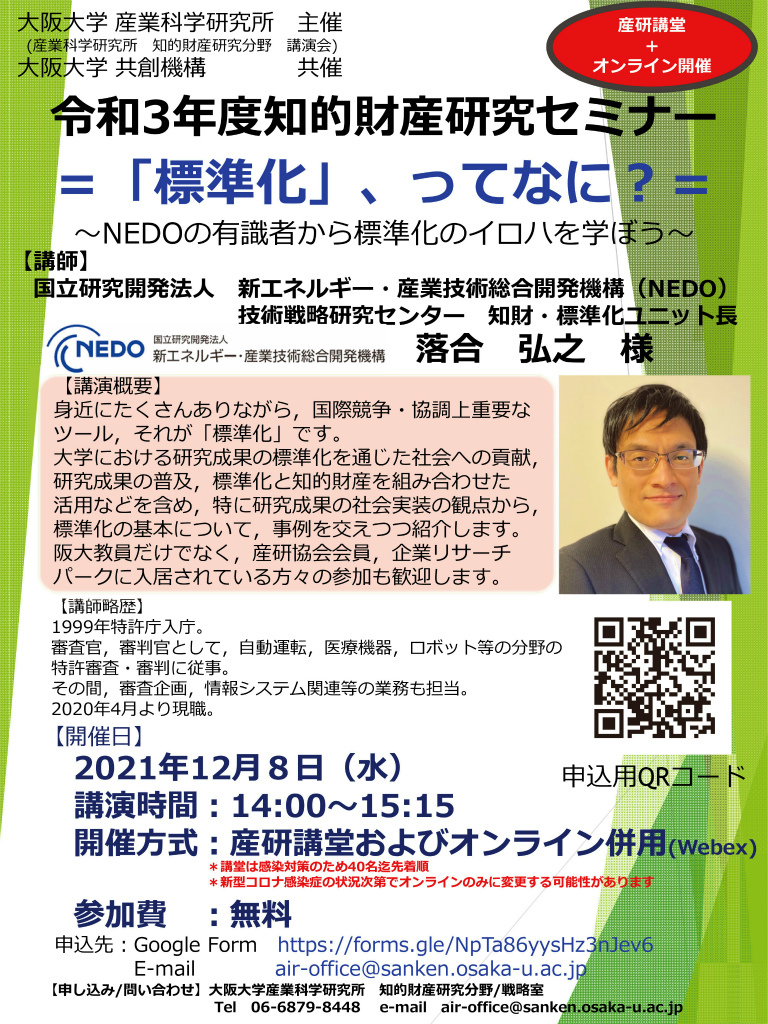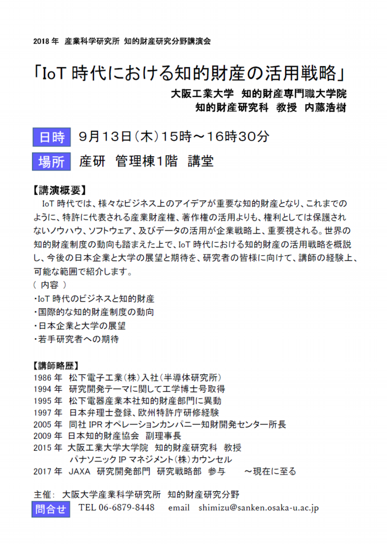 【2021年度事業(産業科学研究所 知的財産研究分野 講演会)】