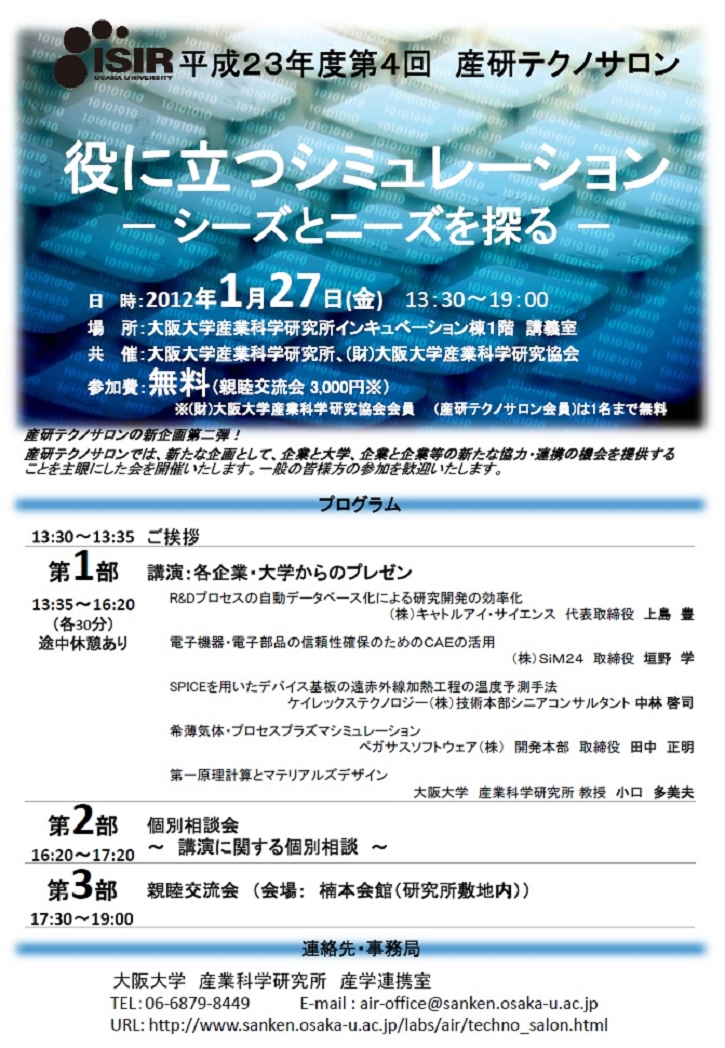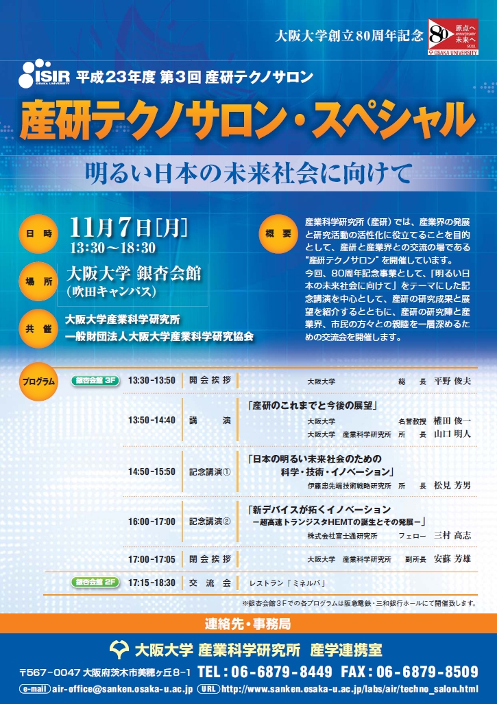 産研テクノサロン・スペシャル(大阪大学創立80周年記念事業)