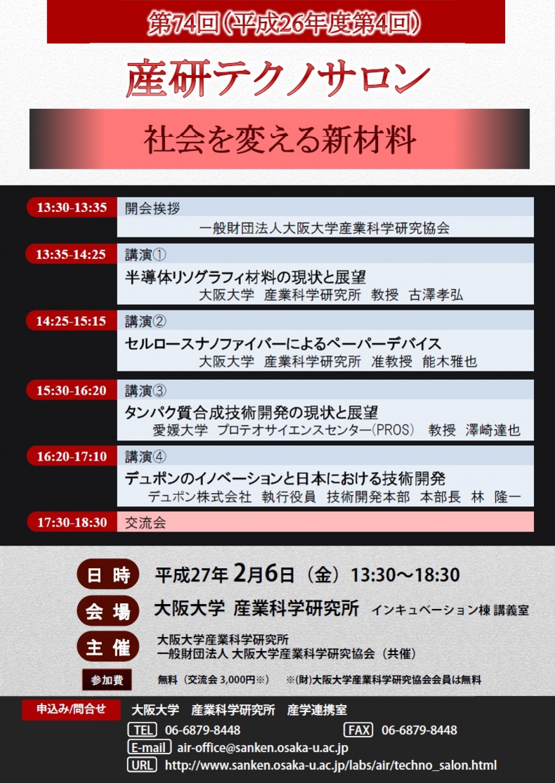 第74回(平成26年度第4回)産研テクノサロン