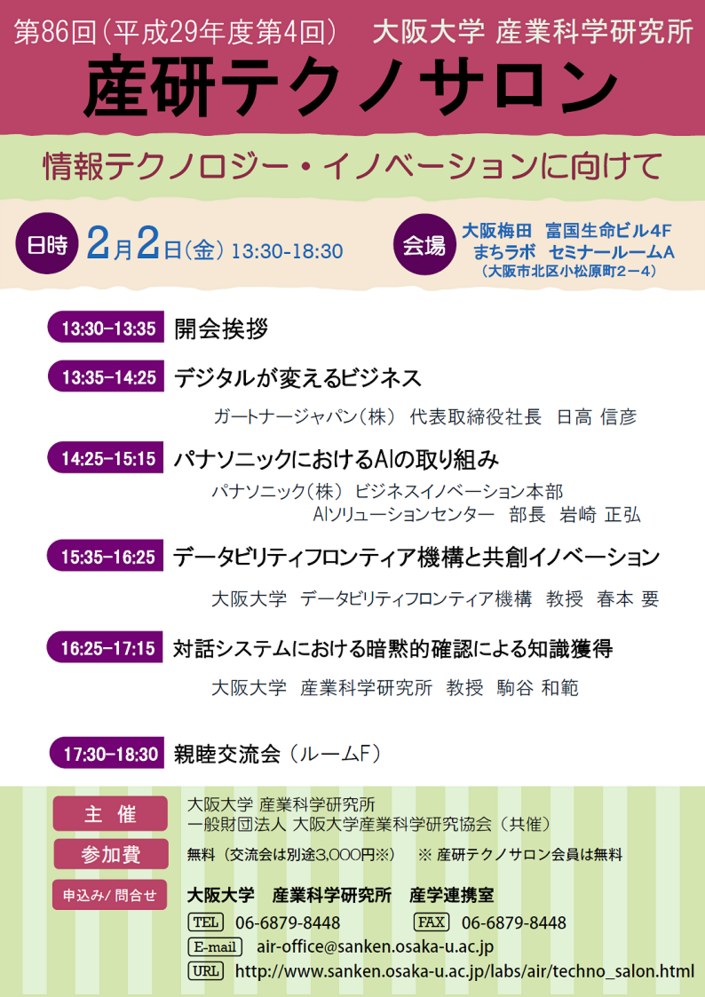第86回(平成29年度第4回)産研テクノサロン