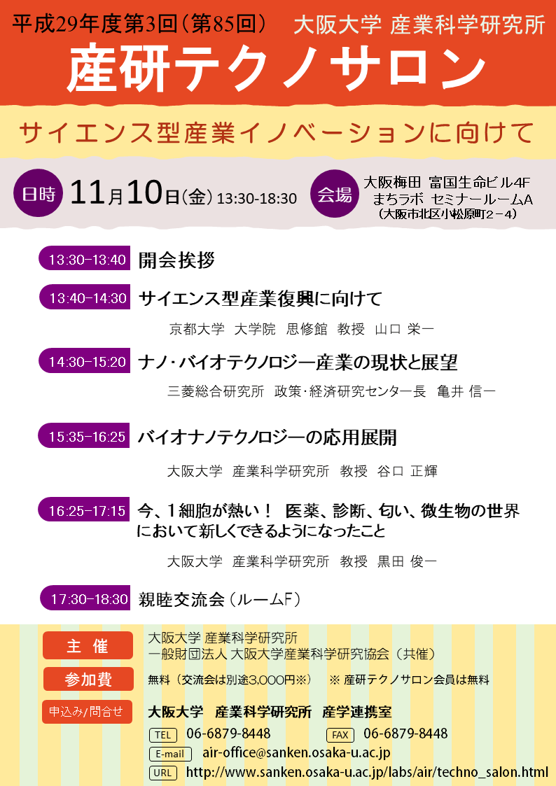 【主催】 大阪大学 産業科学研究所