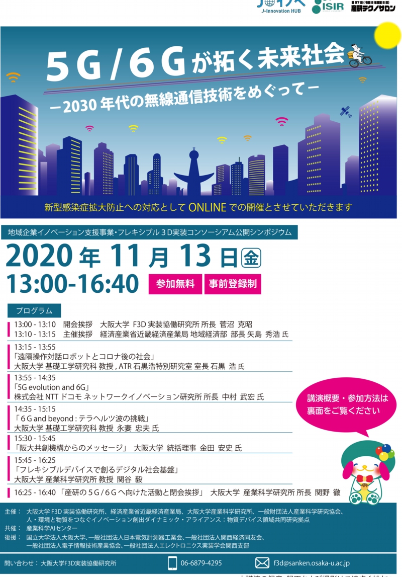※大阪大学産業科学研究協会 産研テクノサロン会員特別視聴席:大阪大学 産業科学研究所 管理棟 2階 大会議室(1階 講堂から変更となりました)
