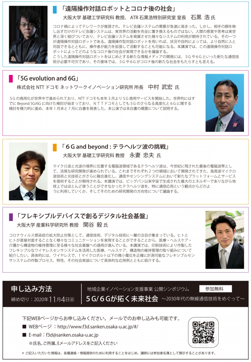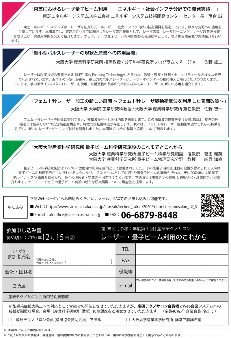 →特別聴講会場における視聴参加申込は、産研協会事務局(RAIS@sanken.osaka-u.ac.jp)までご連絡願います。