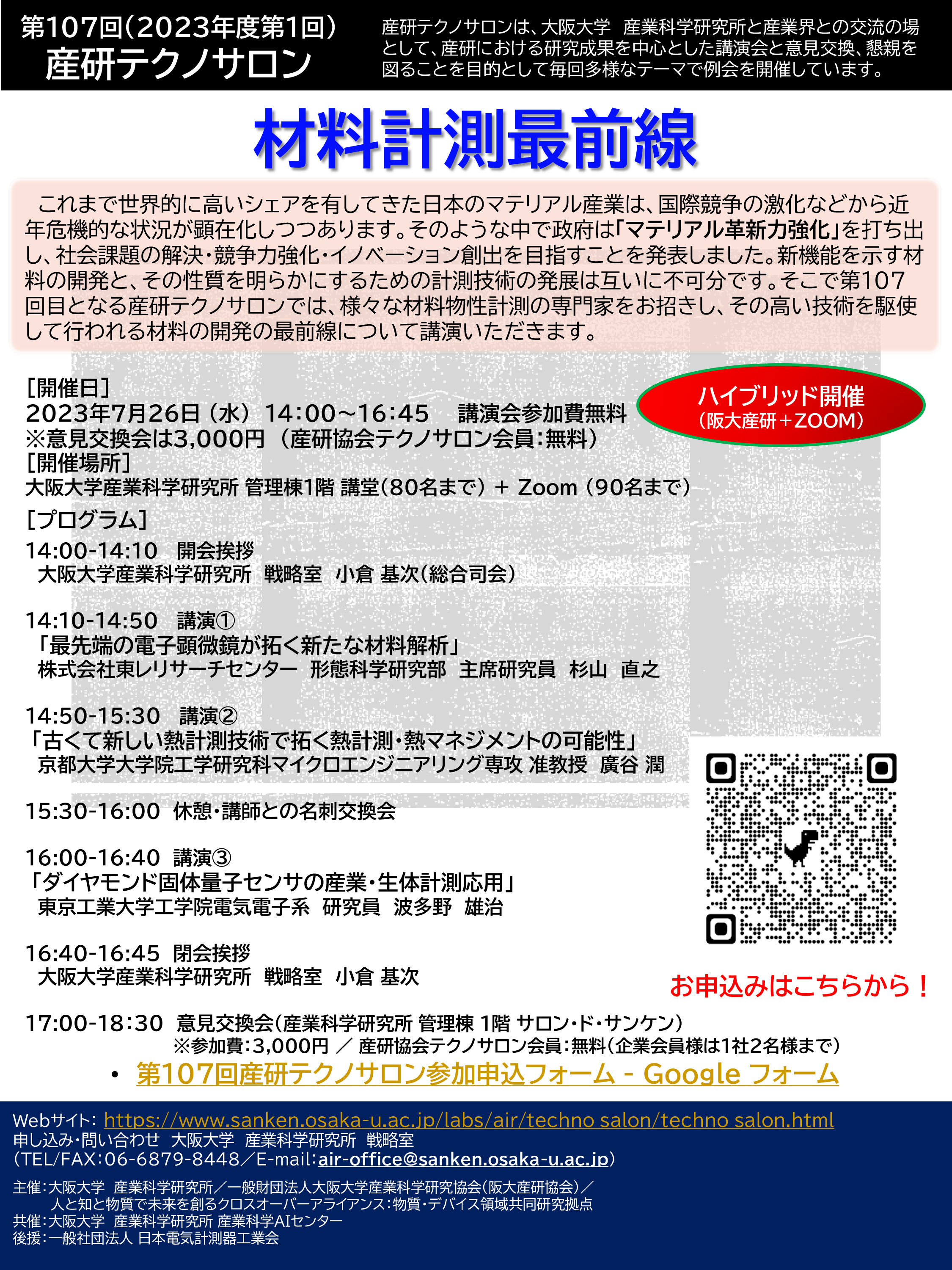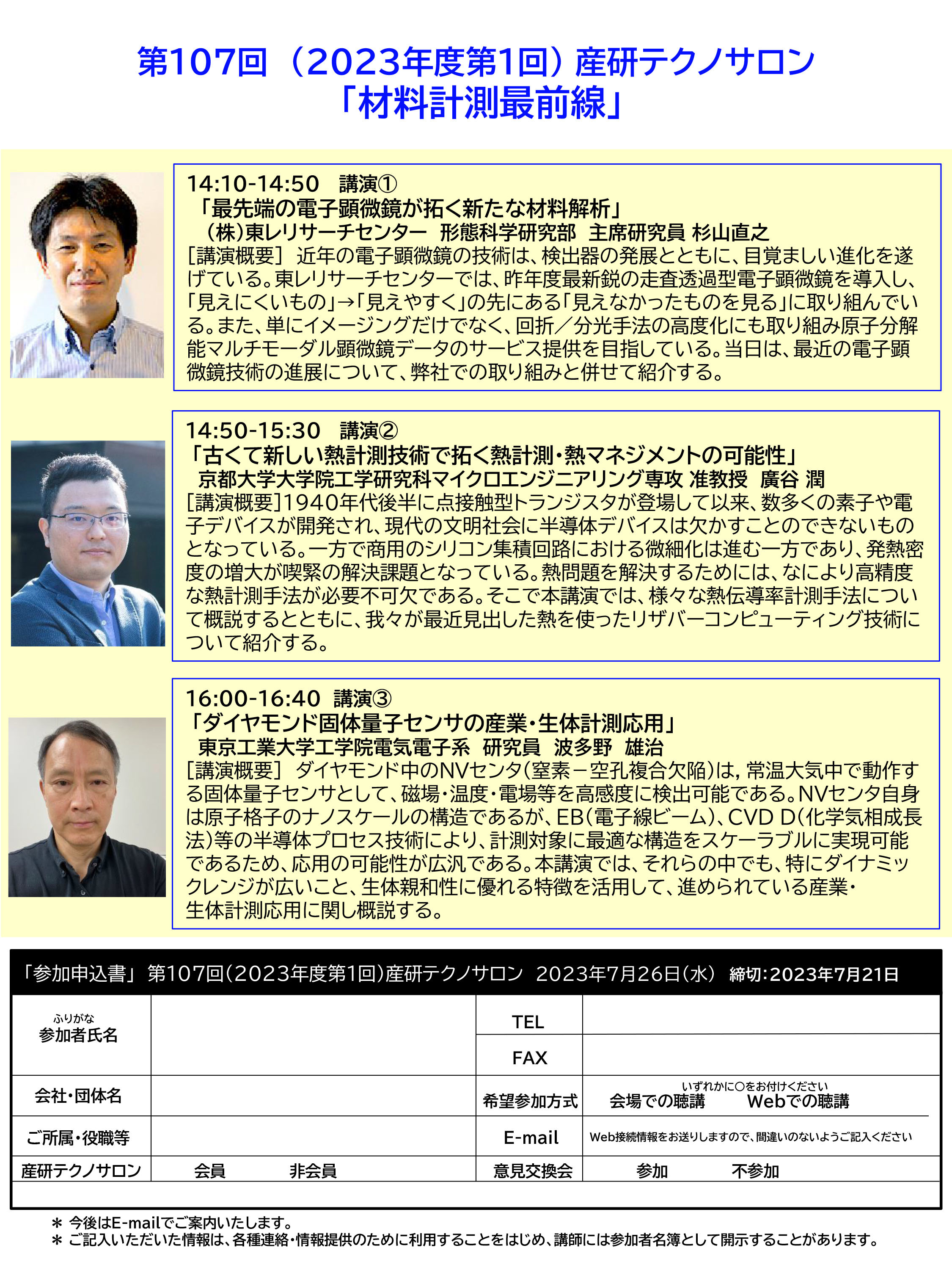 【フライヤー】 第107回産研テクノサロンフライヤー(PDF)