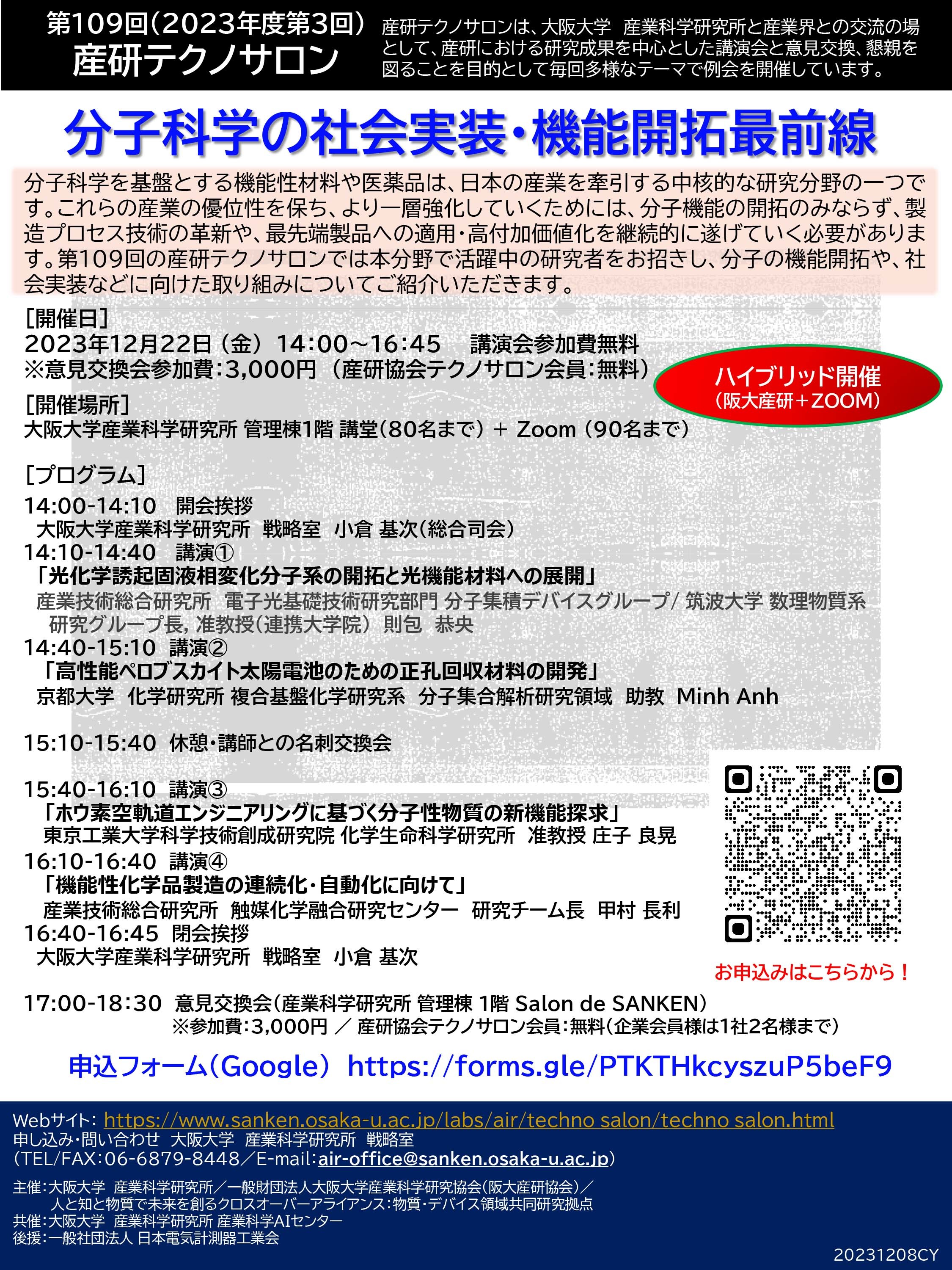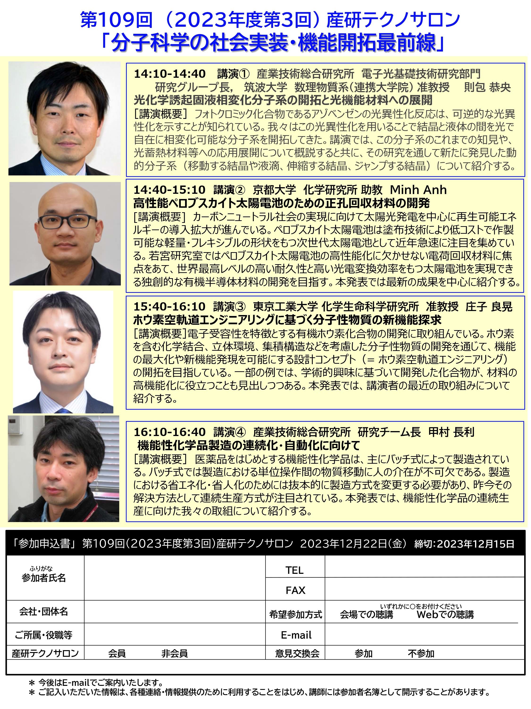 【フライヤー (2023/12/11更新)】 第109回産研テクノサロンフライヤー(PDF)