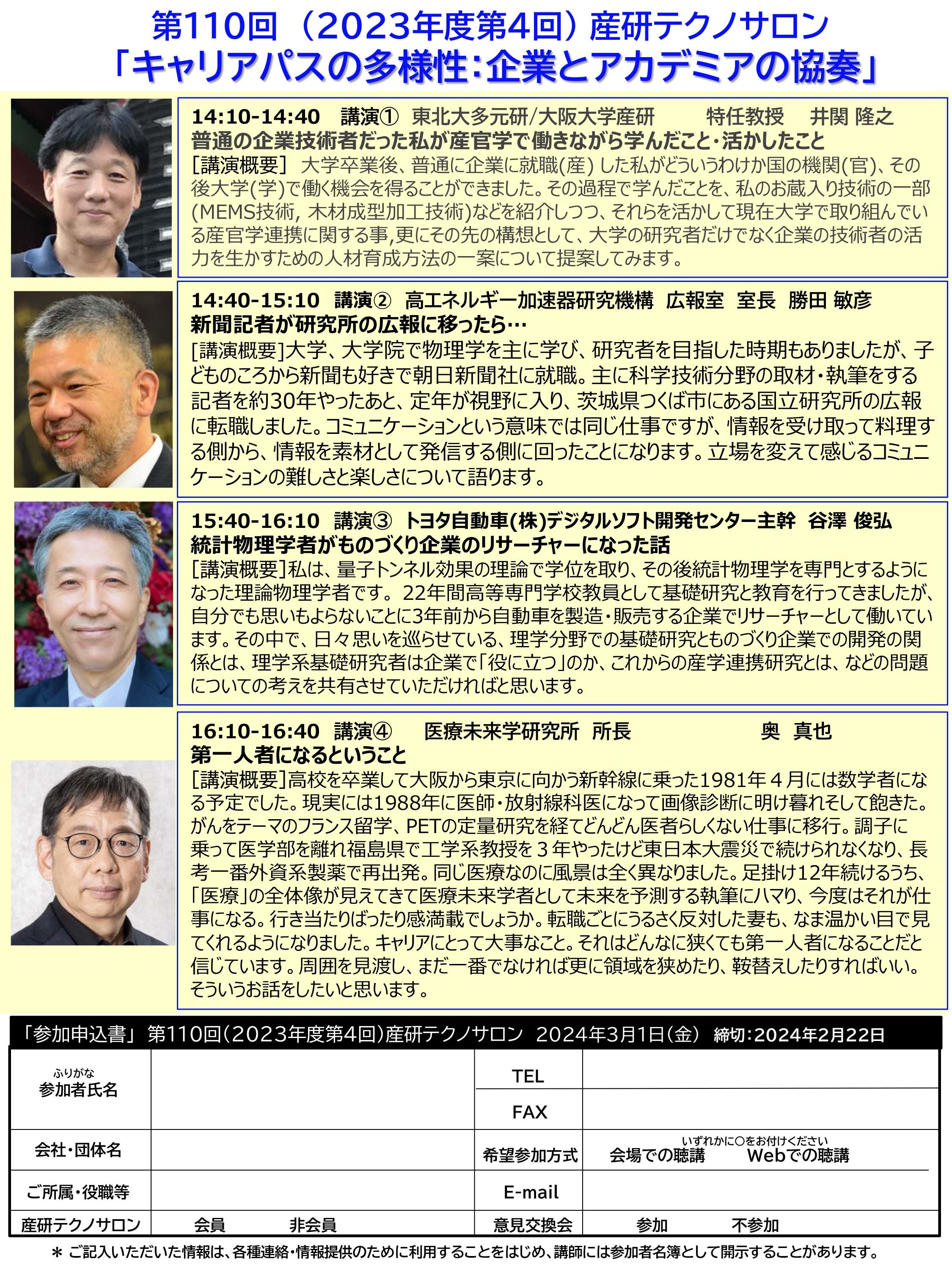 【フライヤー (2024/1/29更新[ver.4])】 第110回産研テクノサロンフライヤー(PDF)
