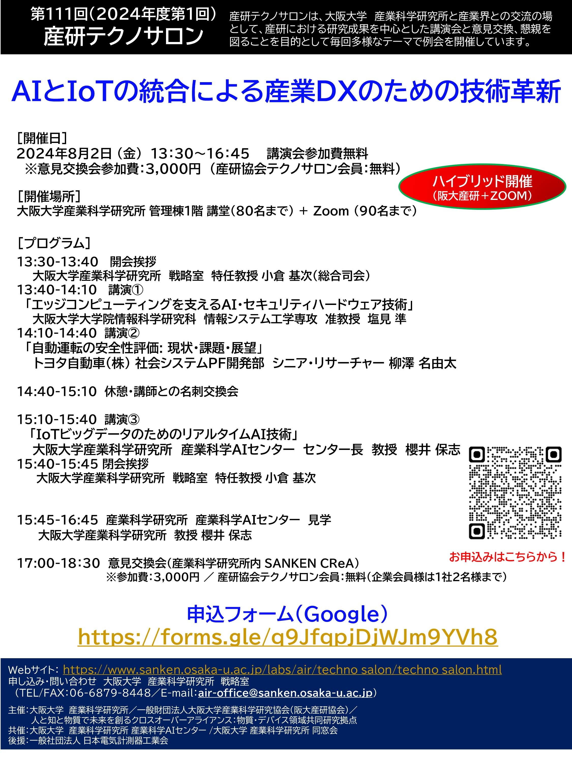 第111回(2024年度第1回)産研テクノサロン