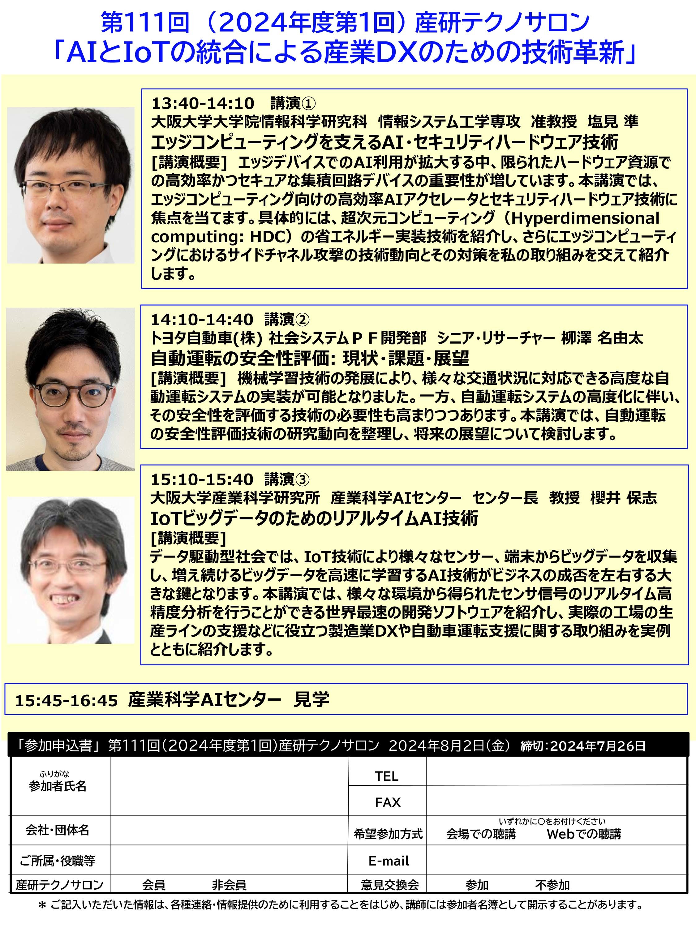 【フライヤー】 第111回産研テクノサロンフライヤー(PDF)