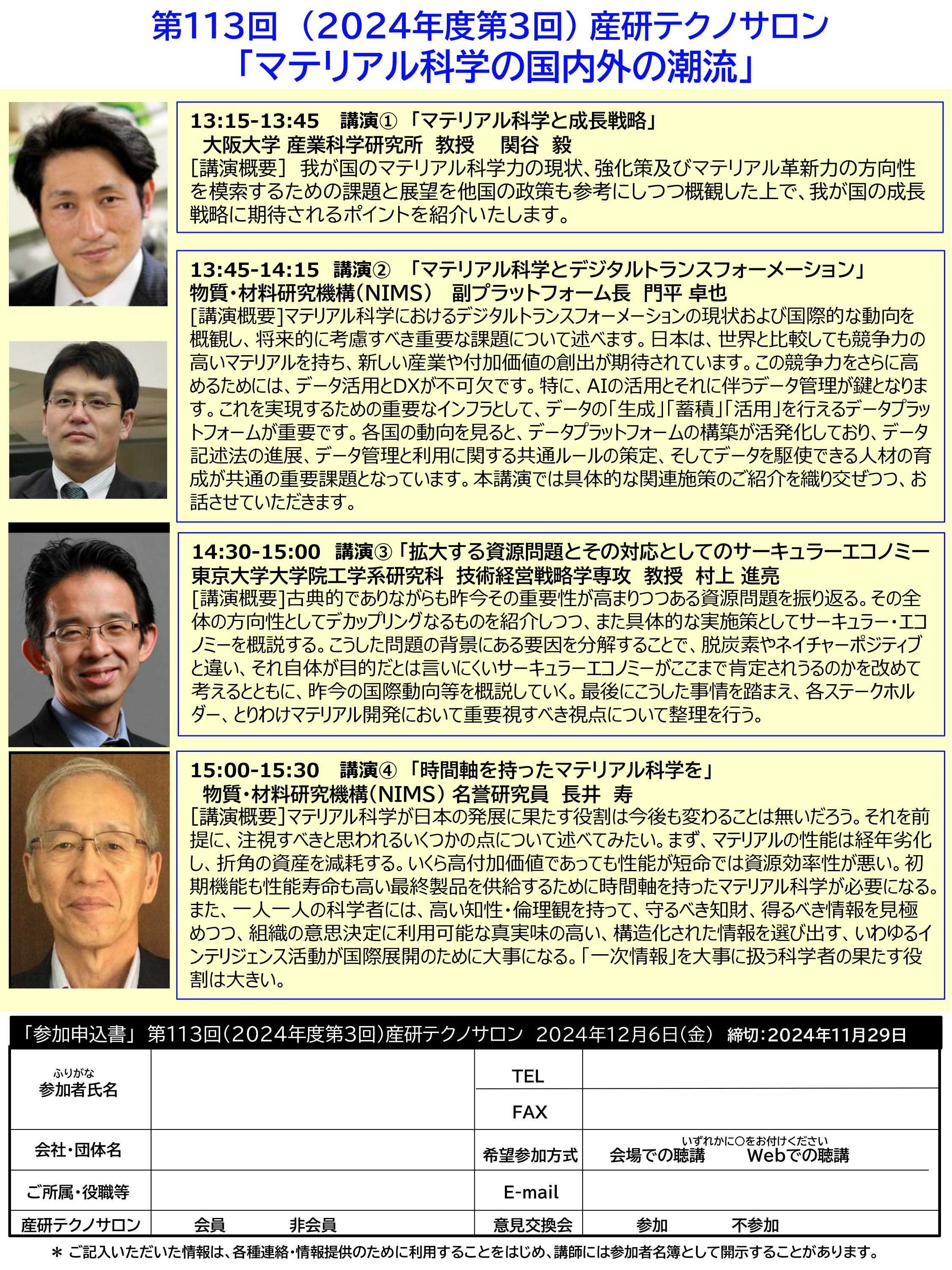 【フライヤー】 第113回産研テクノサロンフライヤー(PDF)