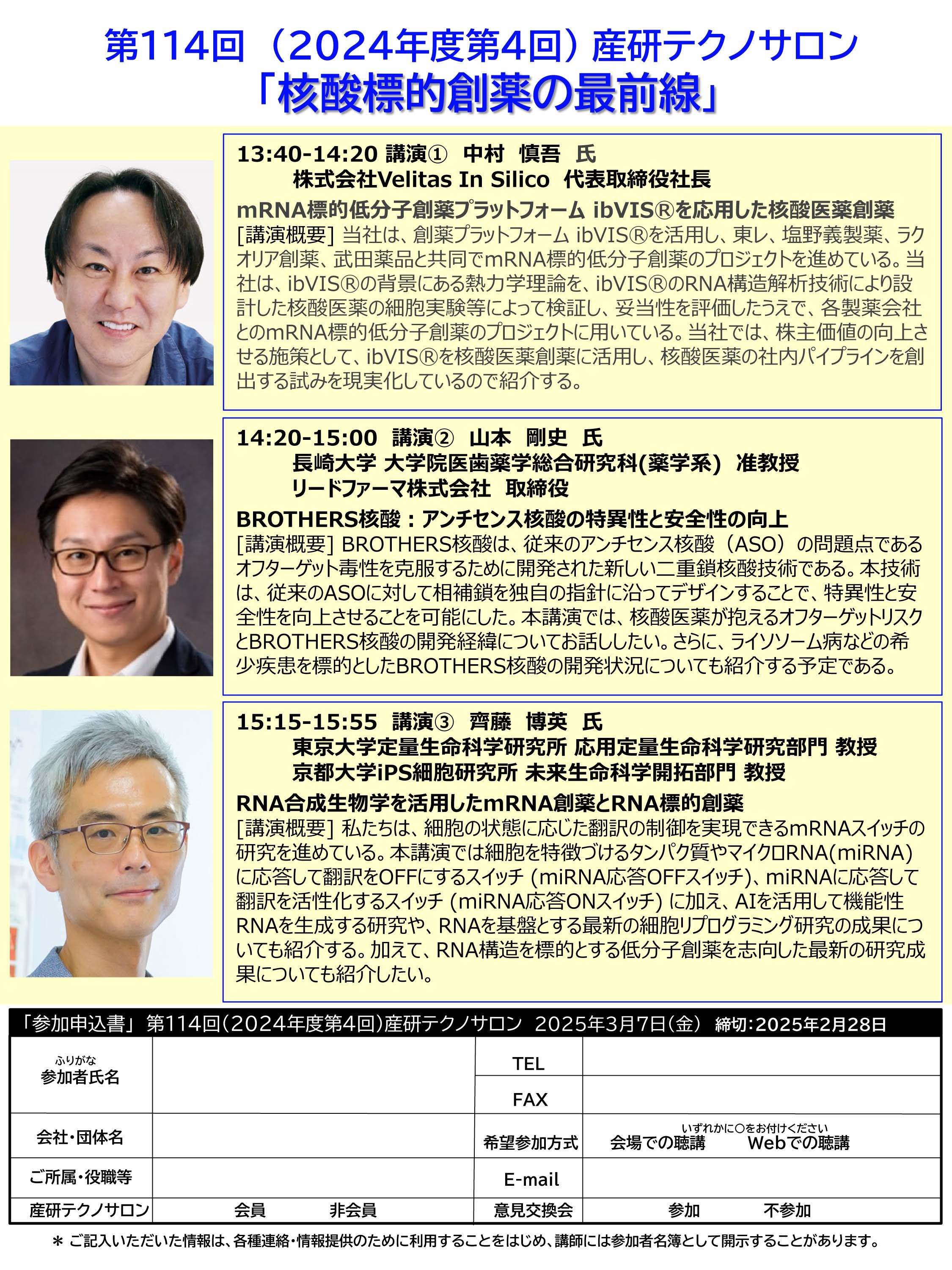 【フライヤー】 第114回産研テクノサロンフライヤー(PDF): 250123更新版