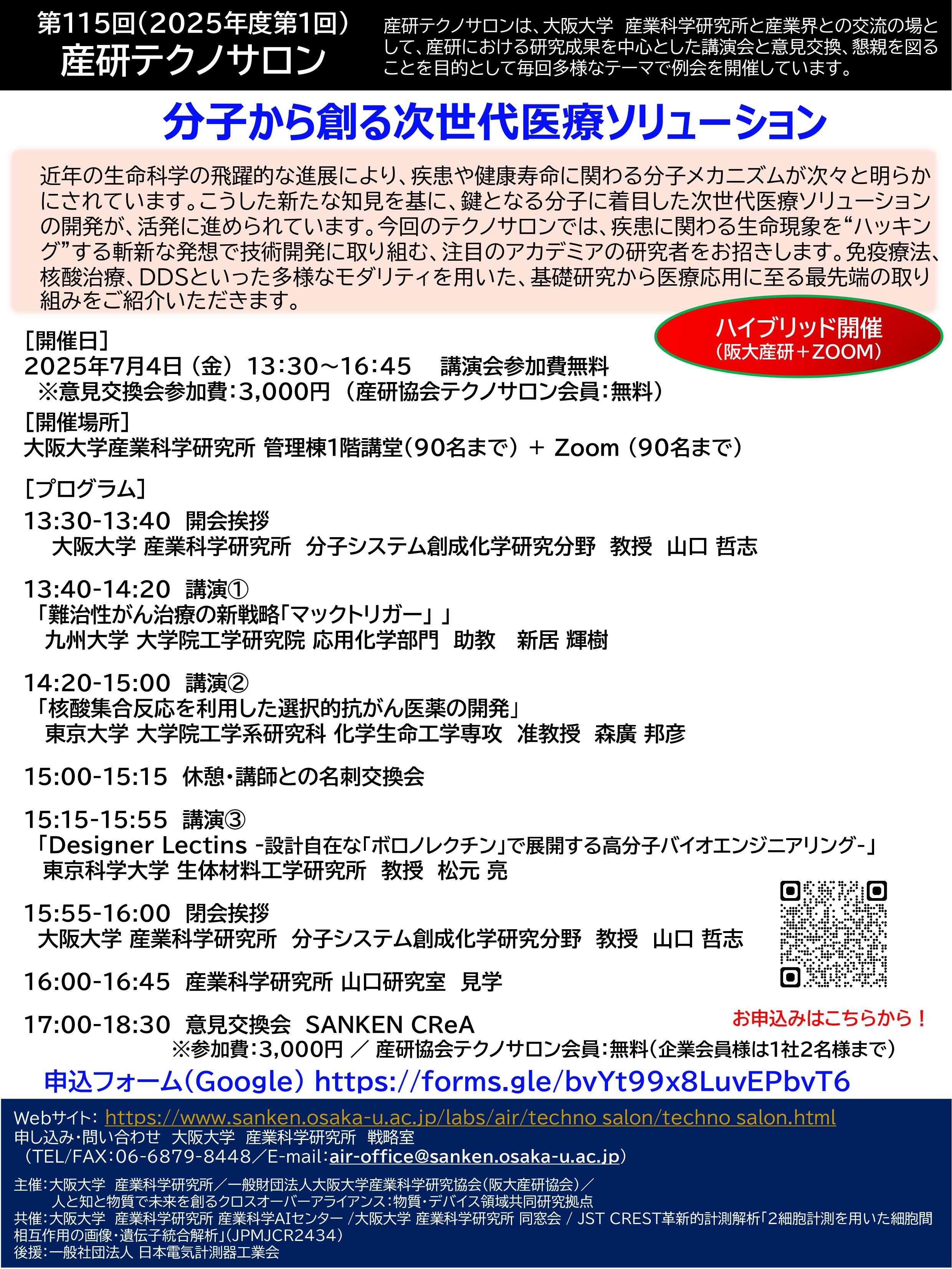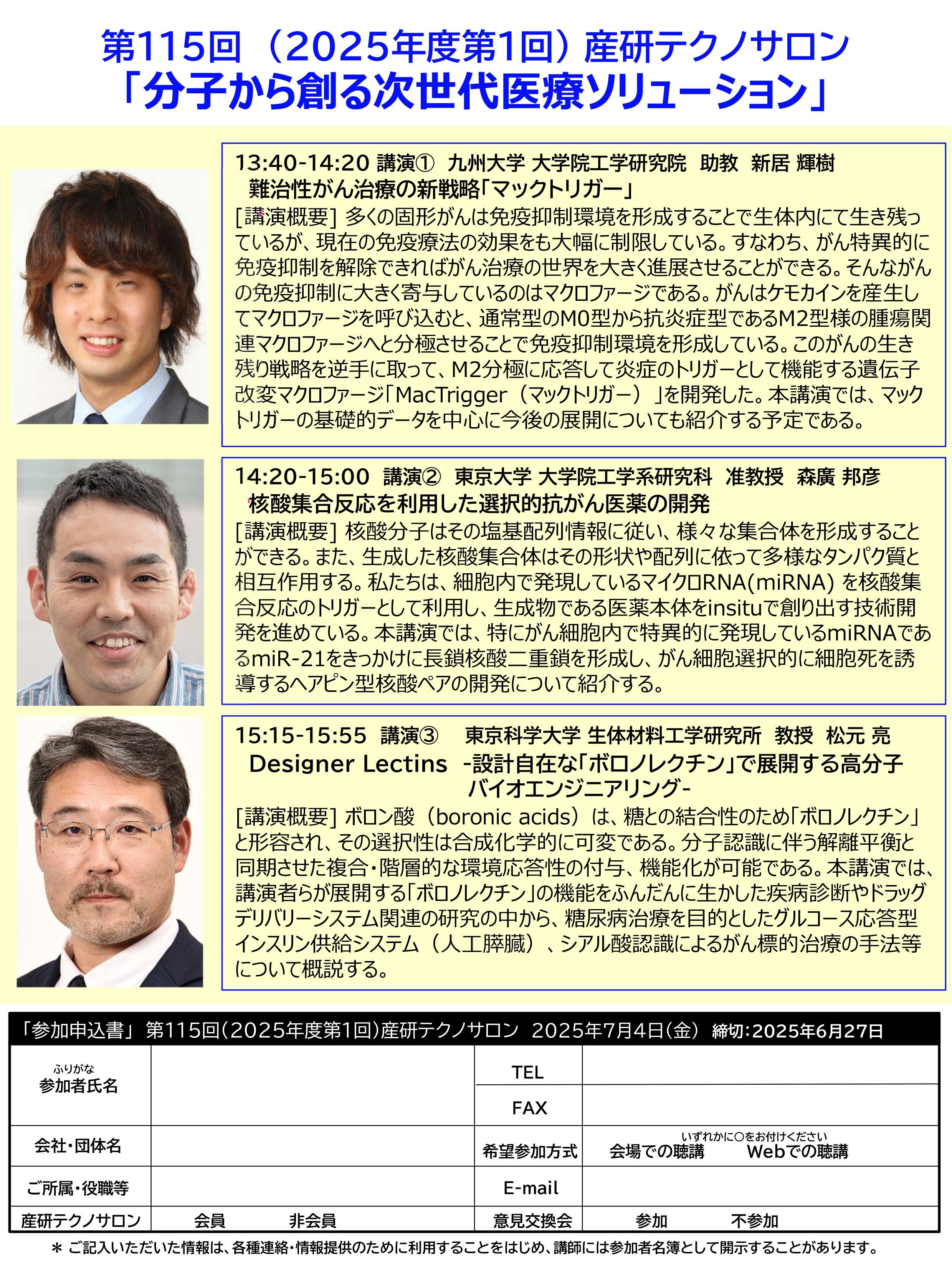 【フライヤー】 第115回産研テクノサロンフライヤー(PDF)[2025.5.19更新]