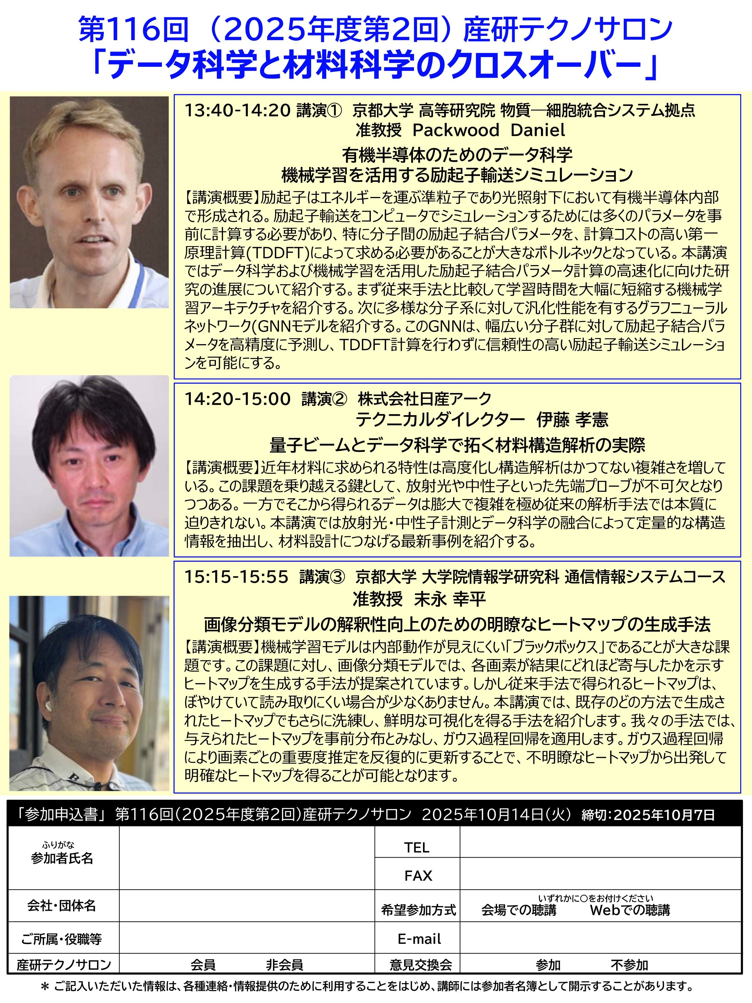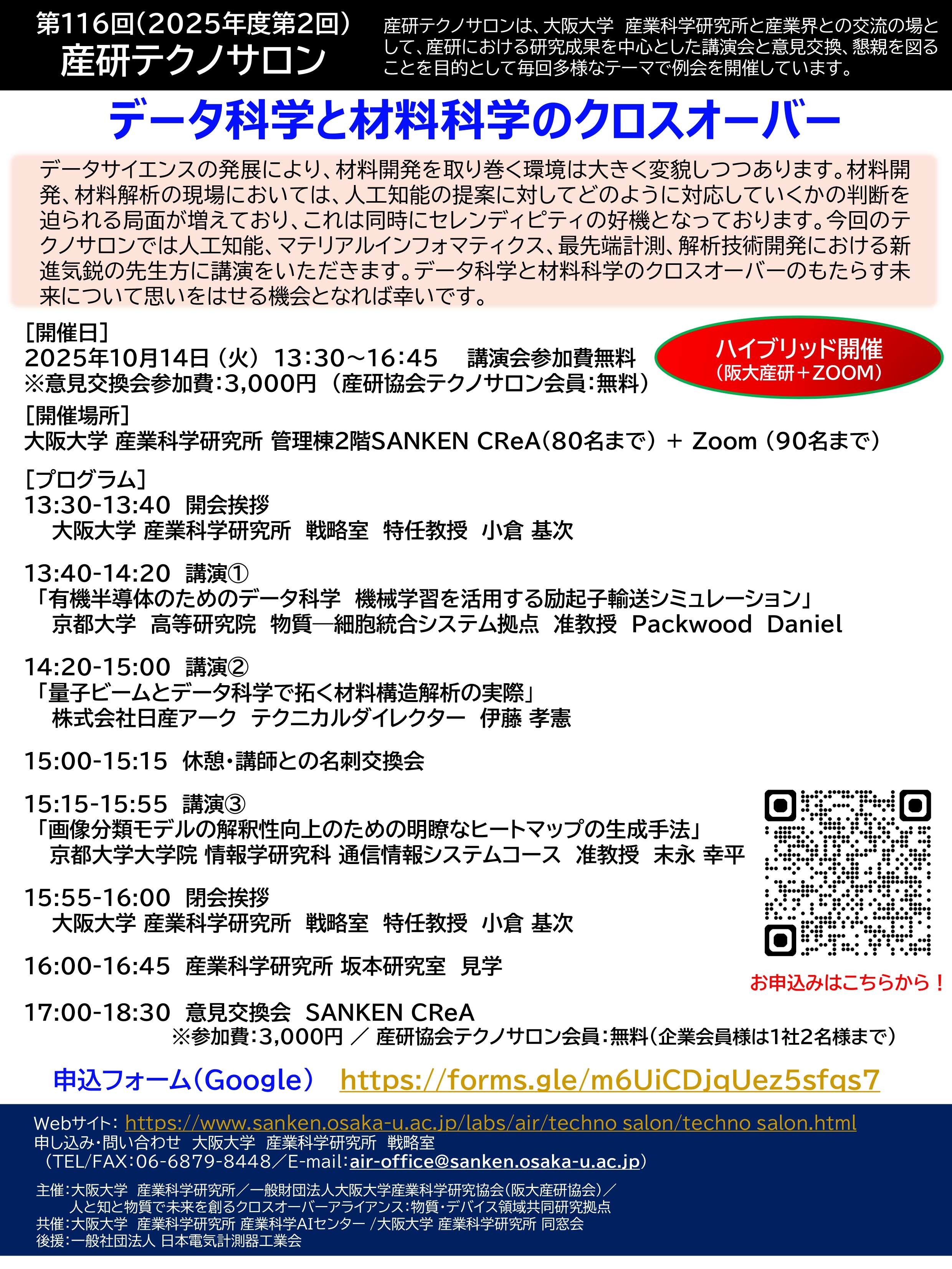 【フライヤー】 第116回産研テクノサロンフライヤー(PDF)[2025.8.12更新]