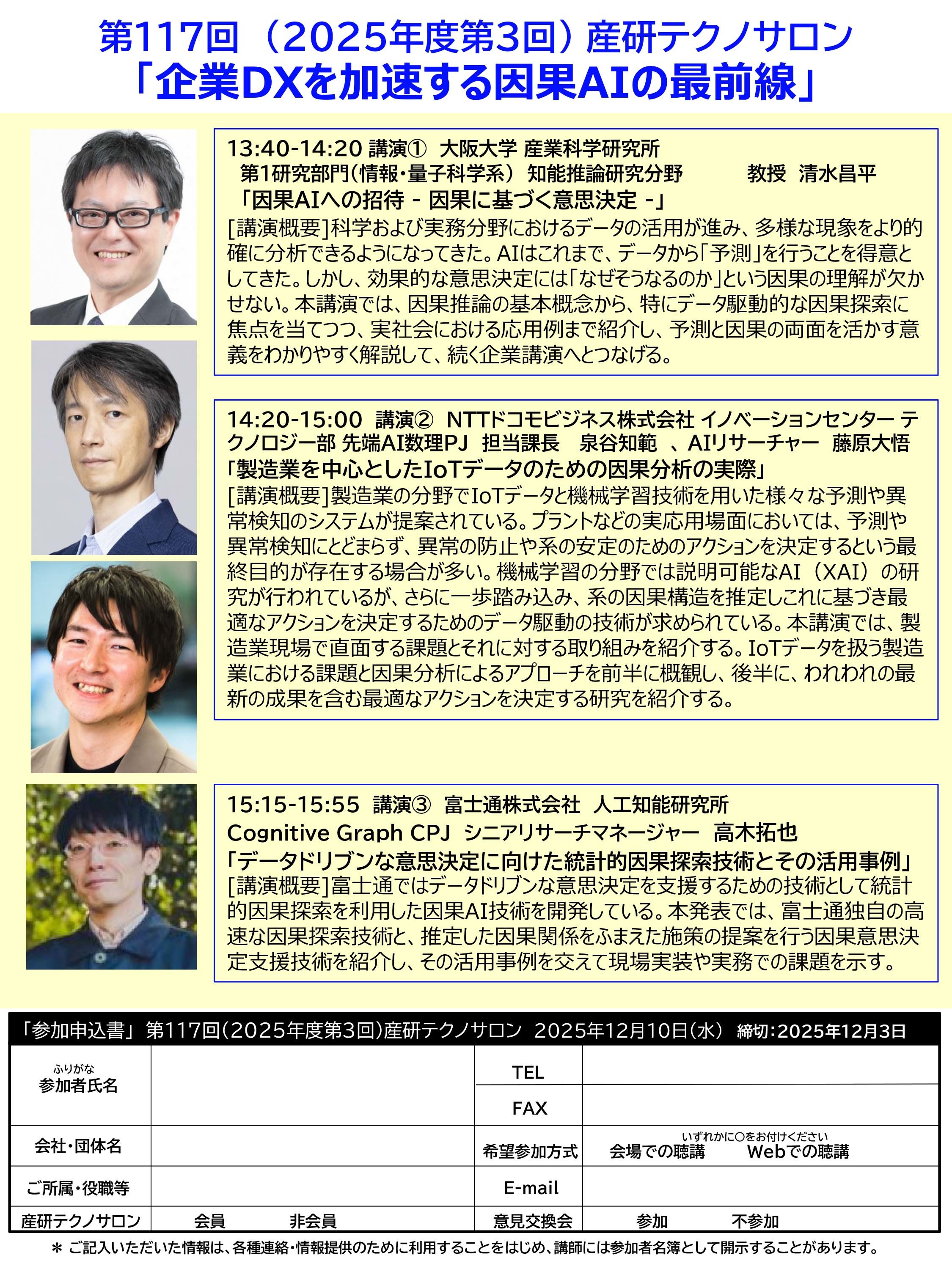 【フライヤー】 第117回産研テクノサロンフライヤー(PDF)[2025.10.30更新]