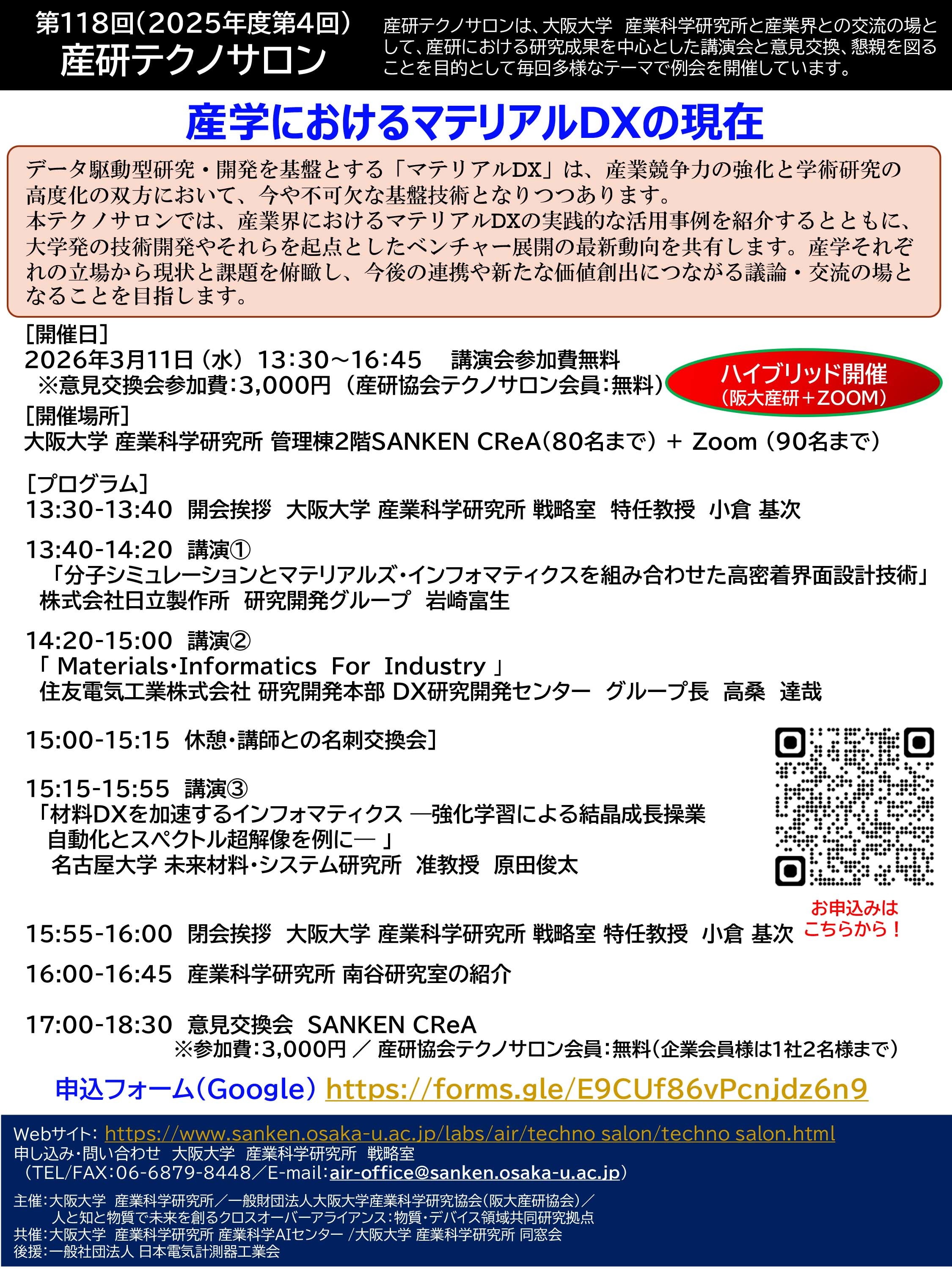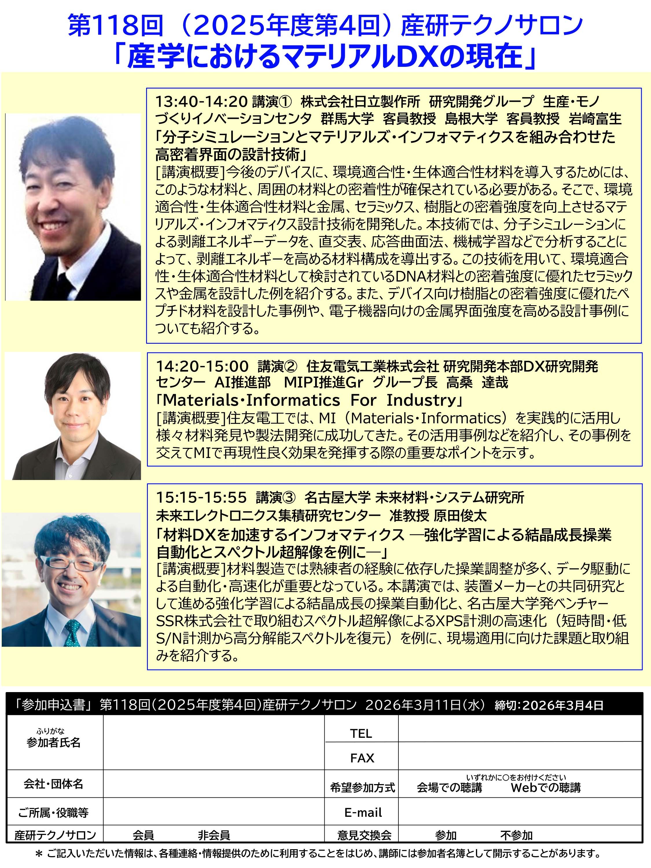 【フライヤー】 第118回産研テクノサロンフライヤー(PDF)[2026.1.9更新]